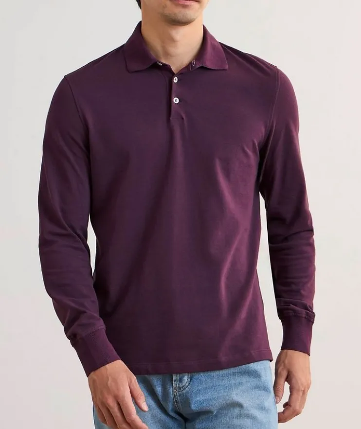 - Designed to offer you extra softness and breathability, this polo shirt is cut from a solid piqué jersey combined with a classic button fastening and long-sleeve silhouette. Soft ribbed trim completes the effortlessly stylish staple.