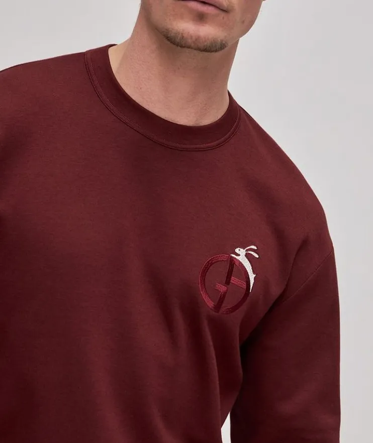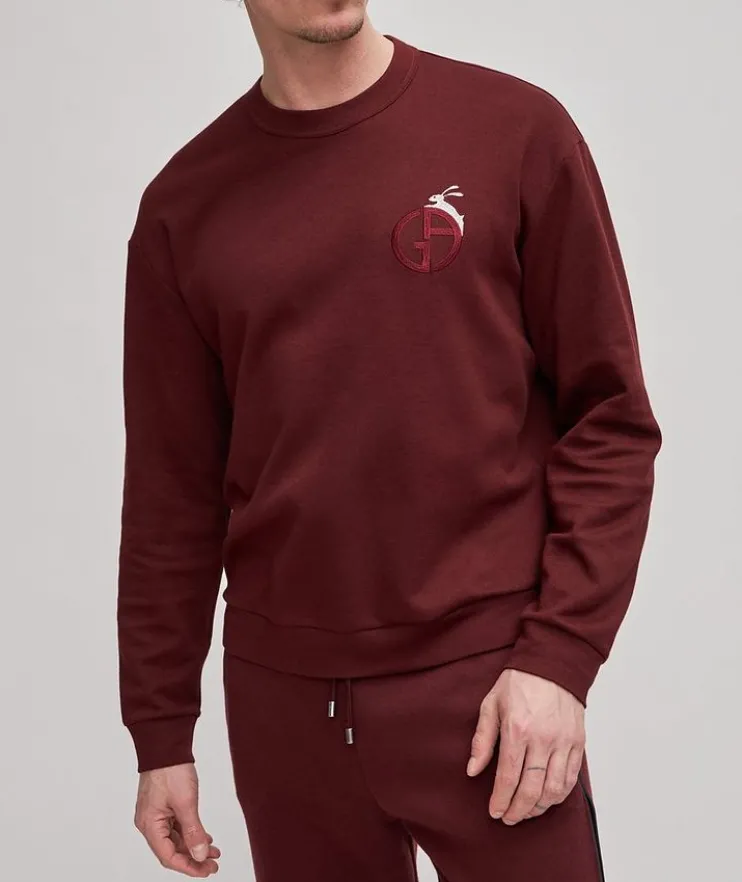 - Elegance and performance come together through essential lines and sophisticated designs in an exclusive drop dedicated to the Lunar New Year. Giorgio Armani presents this finely crafted crewneck, featuring their famous embroidered logo on the chest with a delicately perched rabbit resting on top of it. Its rich red finish further proves the brand’s attention to detail as this shirt becomes the essence of the rabbit. Tucked away in a very special Lunar New Year branded garment bag for safe keeping, celebrate the festive time and step into the new year in style with this dedicated piece.