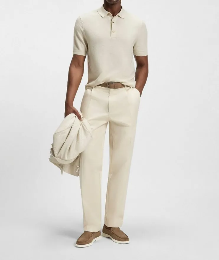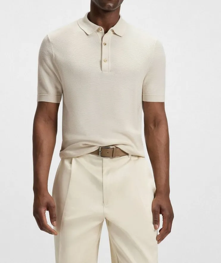 - With its rich structure framed by ribbed trims, this knit polo will become a refined favourite. Cut in a classic regular fit and blended with soft cotton and breathable lyocell, this polo drapes comfortably along the body and provides versatile styling options.