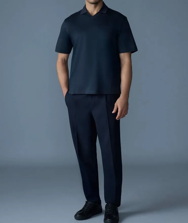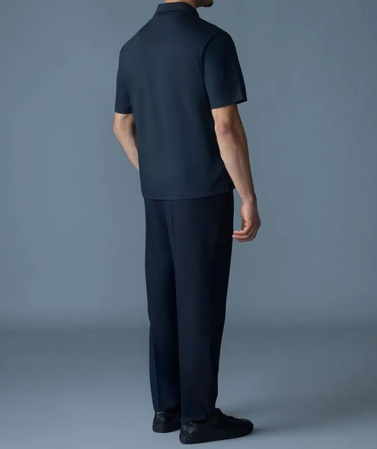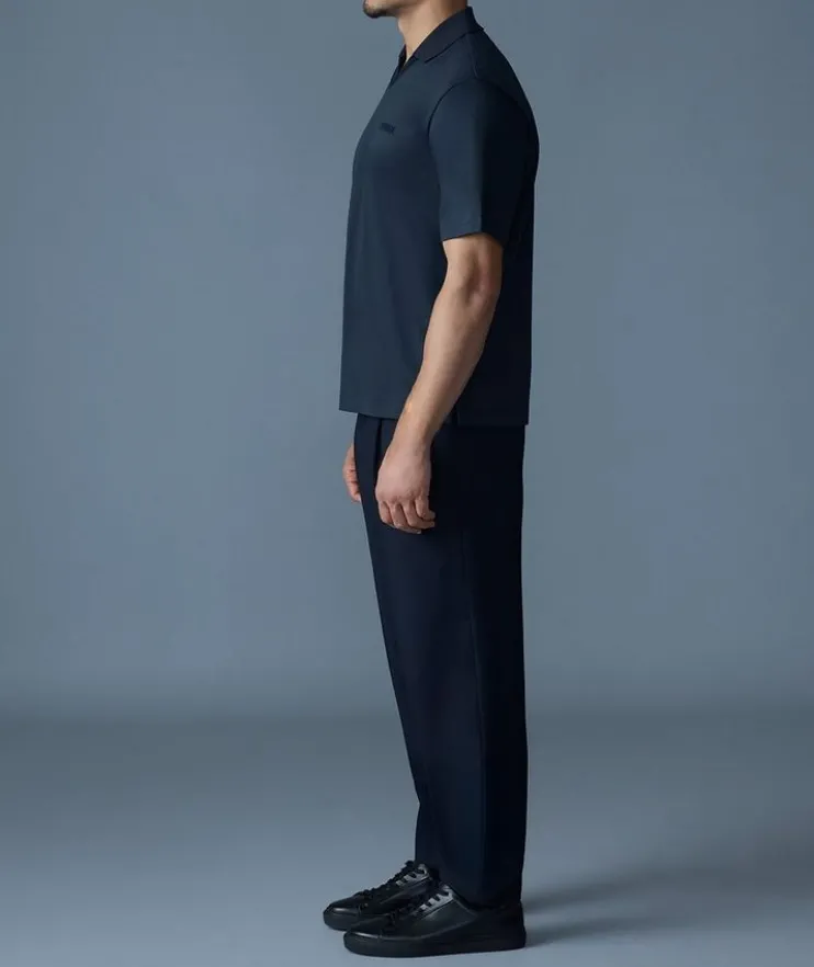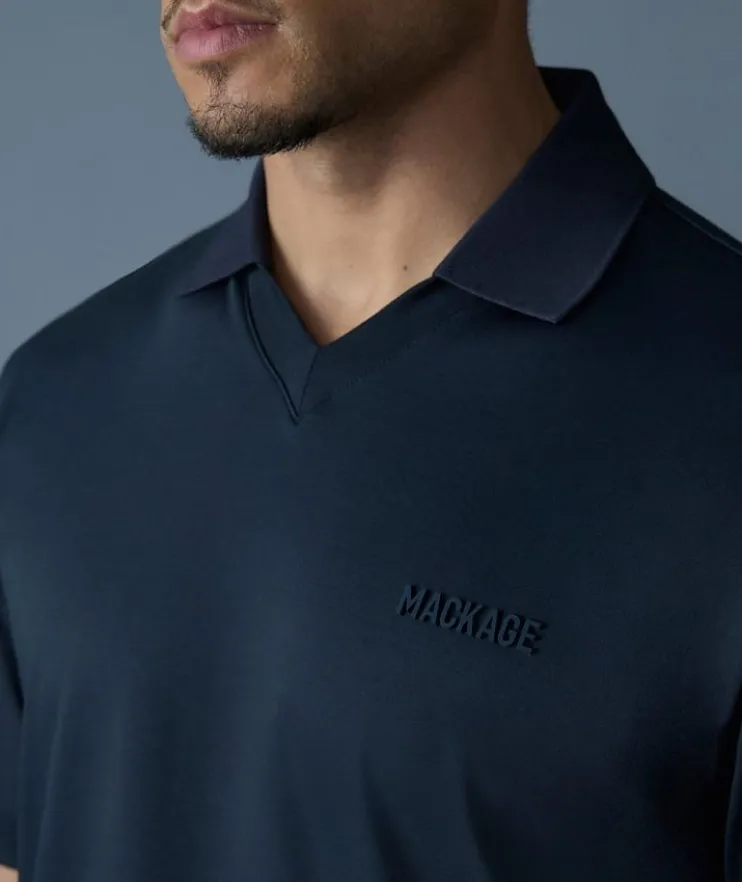 - A classic polo crafted from 100% organic mercerized cotton for breathable, everyday comfort. Featuring a subtle V-neck polo collar with rib knit detailing, it has a modern, relaxed style. Side slits at the hem add ease of movement and distinct styling.