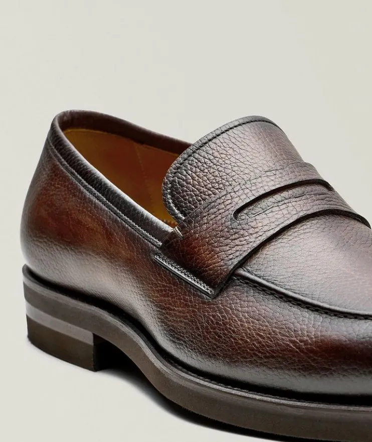 - Updated with a modern shape and cushioned rubber sole, this classic loafer takes you from office to evening with comfort and ease. For a custom fit with your loafer, choose a full size down from your sneaker size to allow the snug leather to conform to your foot and gradually stretch to your size for a personalized fit over time.