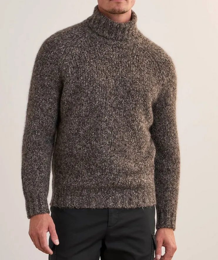 - Designed in Italy with a cozy and relaxed fit, this on-trend turtleneck can be dressed up or down. The alpaca-blend fabrication, raglan sleeves and rib-knit trim adds texture, while the mélange finish completes the style of this garment with a simple, yet refined look.
