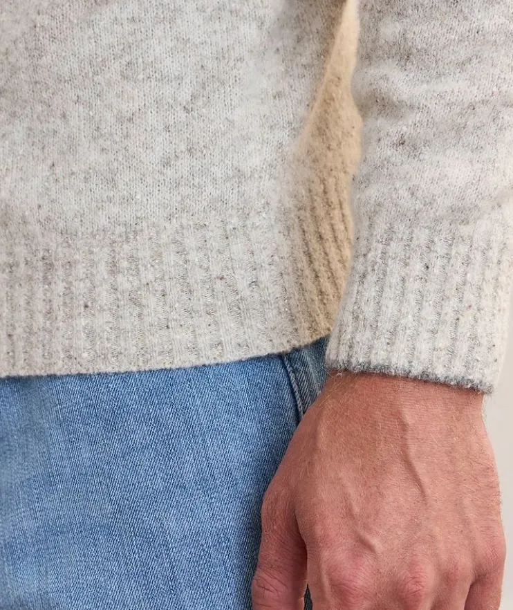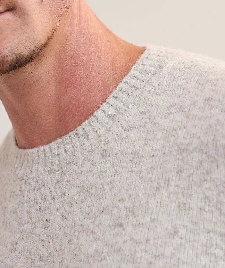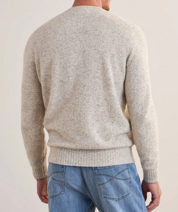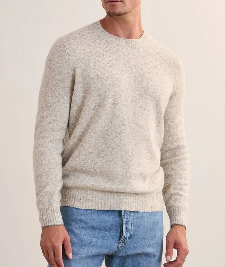 - The careful selection of raw materials enriches this alpaca, wool, silk and cotton crewneck with an unmistakable charm. The artisanal workmanship enhances the natural qualities of the fibers in an airy, flecked yarn with a distinctive mottled and irregular colouring, creating a warm and cozy garment with balanced proportions.