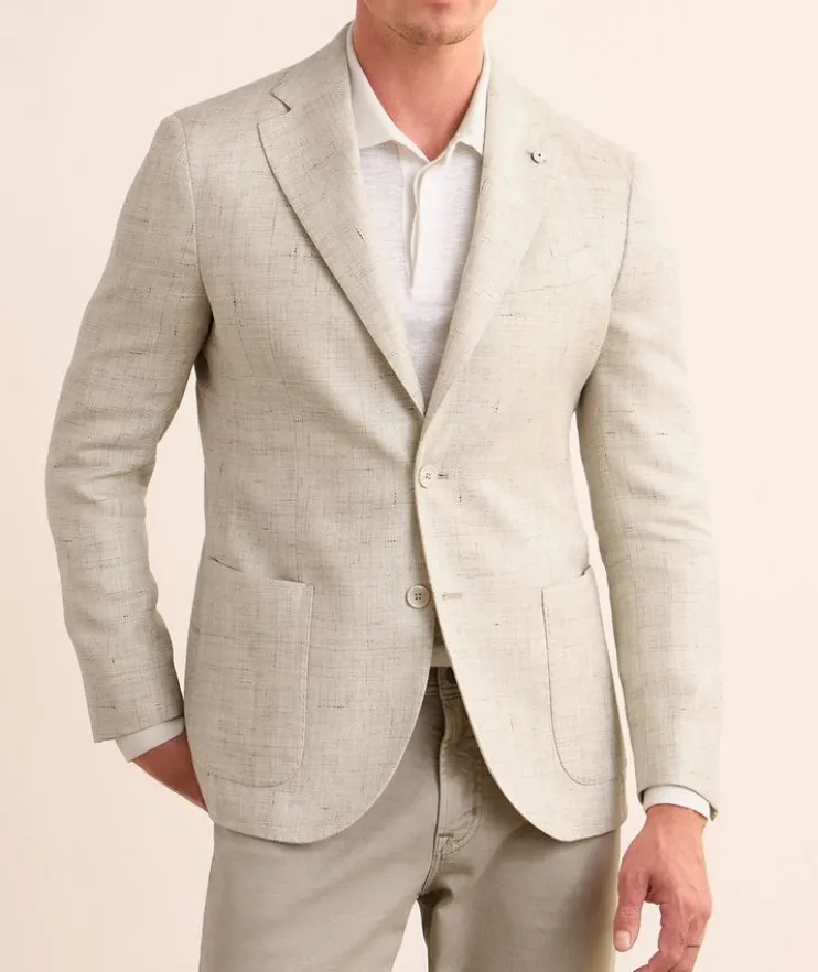 - Crafted from a fine blend of linen and virgin wool, this single-breasted sport jacket exudes contemporary style with classic details and a mélange finish. Ideal for the office or elevating casual ensembles.