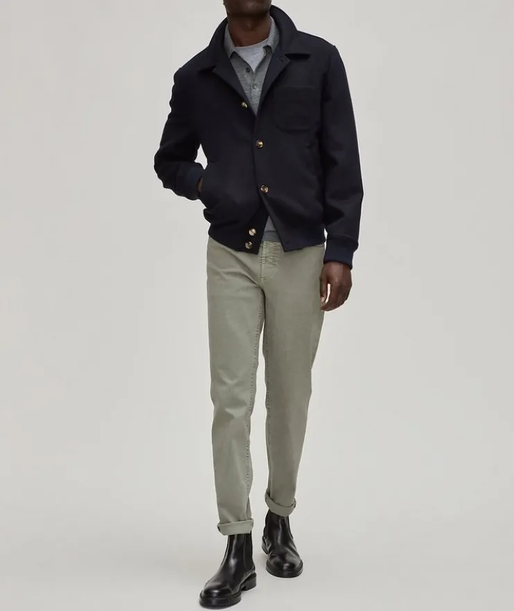 - The handsomeness of a cropped flight jacket highlights a sharp look with longer looking legs. The thick and soft Melton wool texture ensure yourself stays warm during cooler boots seasons. For an elegant casual look, layer the this jacket over a fine-knit turtleneck or a chambray shirt. Pair it with corduroy or wool pants for added texture and warmth.