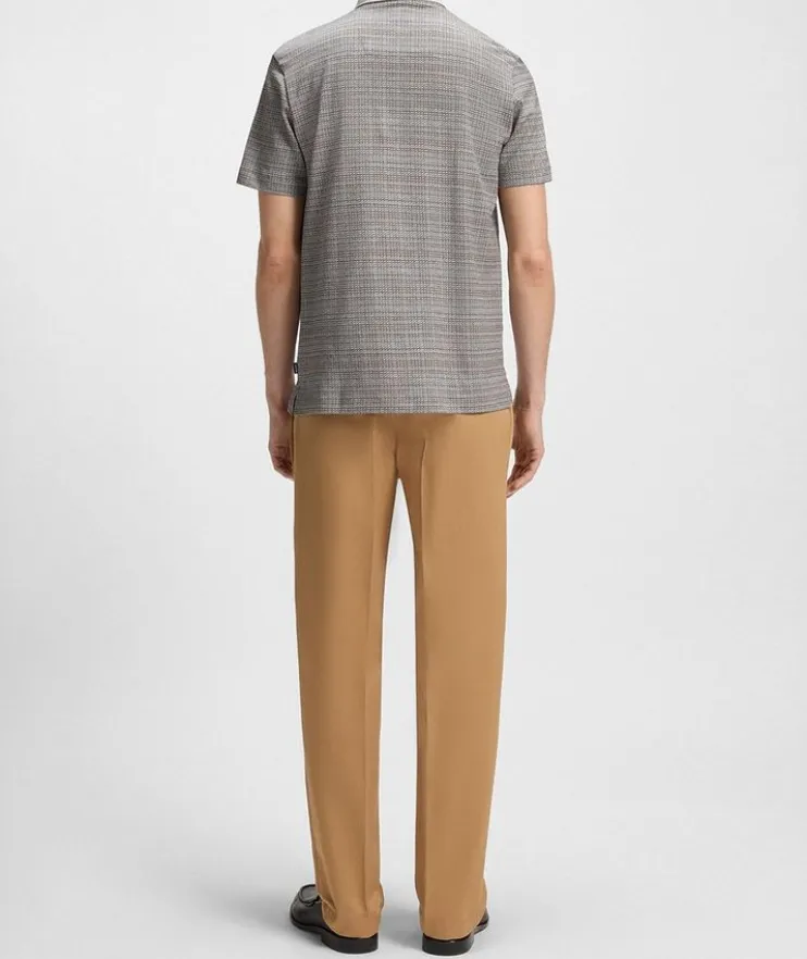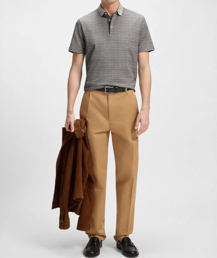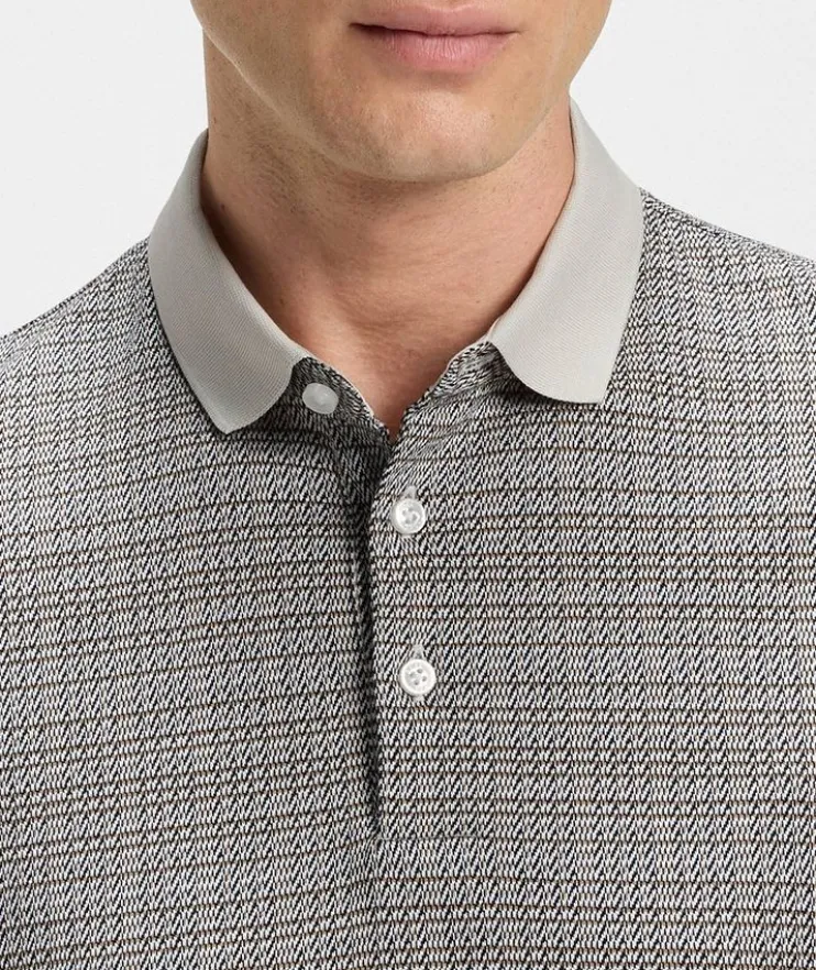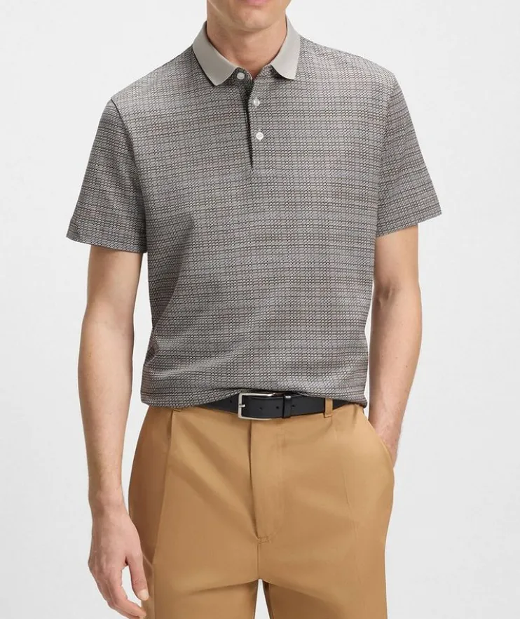 - Constructed in a comfortable regular fit, this versatile polo is crafted from mercerized cotton for elevated softness. This piece is finished in a refined grid pattern for a distinctive look.