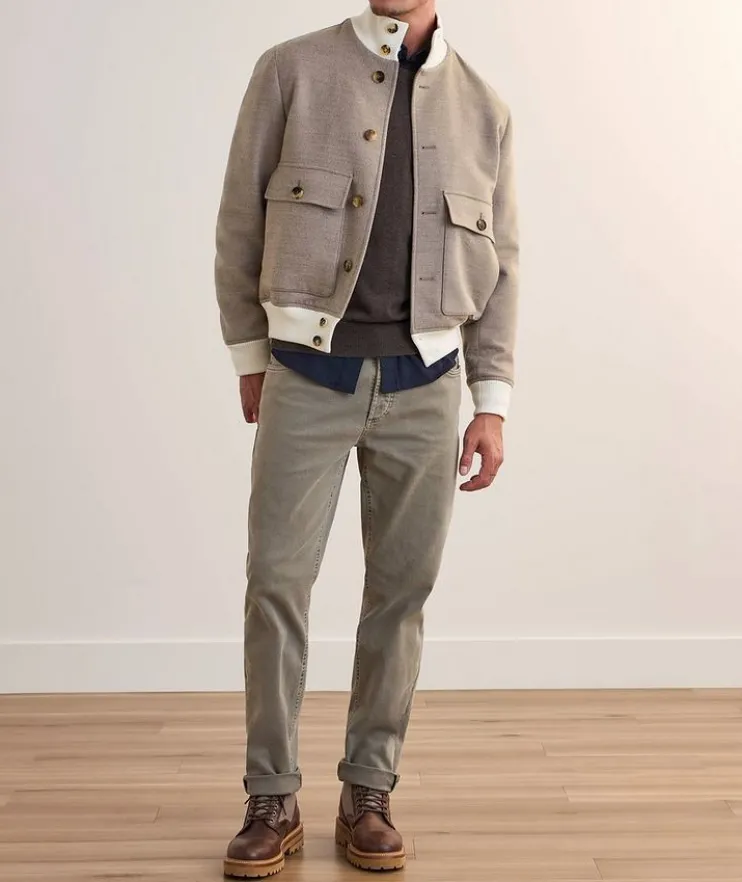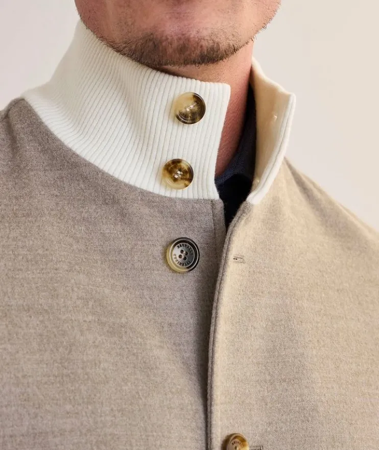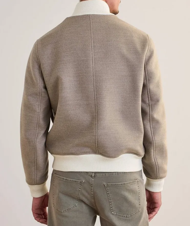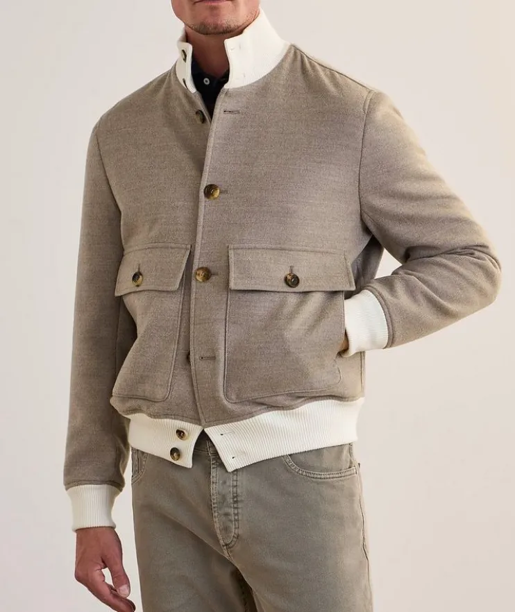 - Fashioned in a luxurious merino wool, cashmere and cotton blend, this bomber style jacket features a two-pocket design with button closure and soft ribbed trim.