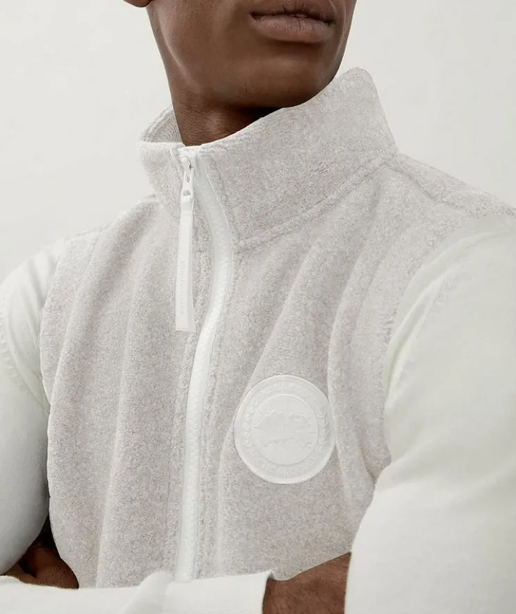 - Explore aesthetic and functional bliss with the versatile and cozy layering Mersey Fleece vest. Adorning the brand’s next generation of fleece, made primarily of recycled wool and bio-based fibres, to support impact on the planet. It features a high collar and rib-knit hem for added protection and comfort and snap-closure exterior pockets to carry your essentials on the go. Wear it with any number of casual, technical, or sporty ensembles and you’re bound to feel at home in your Canada Goose.