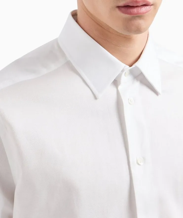 - This shirt has been crafted in Emporio Armani’s New York fit, designed to sit close against the body and taper against the waist to create a slimming silhouette.