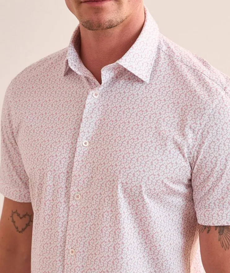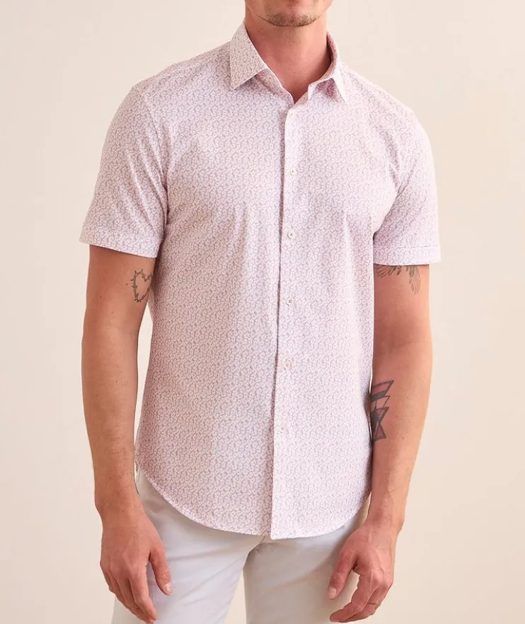 - A warm-weather staple, this short-sleeved sport shirt is crafted from the brand’s OoohCotton® and boasts a micro floral print.