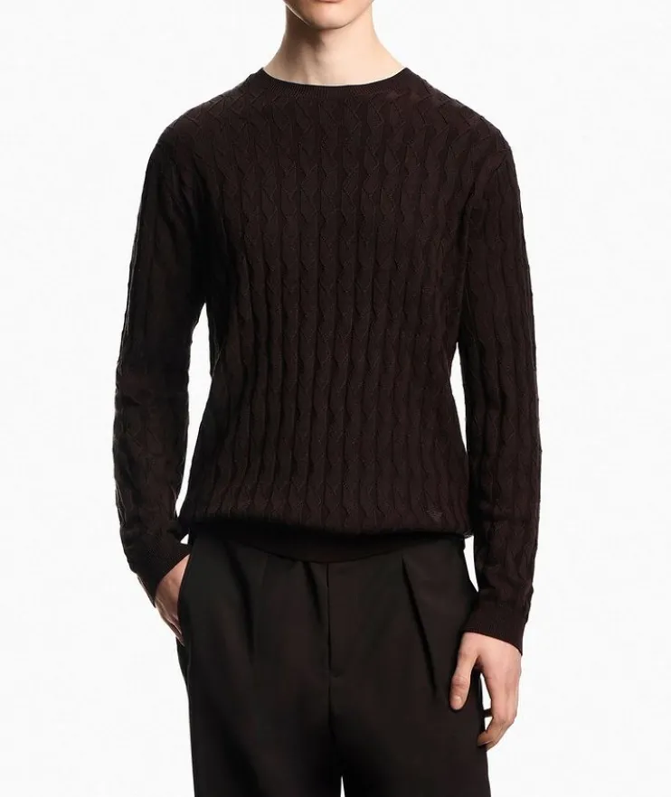 - A versatile layering piece perfect for completing numerous looks, this crewneck jumper is crafted in cozy wool-blend and finished with an exclusive embossed motif that gives the yarn a three-dimensional look for added texture and visual appeal.