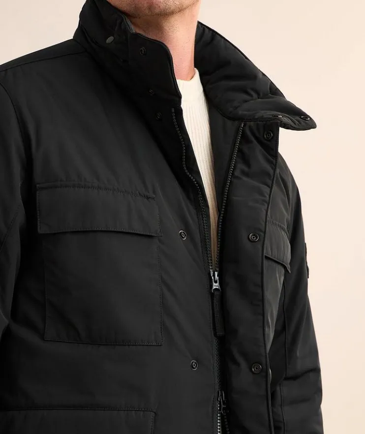 - This padded field jacket made of a technical micro twill featuring a spring-like, helical molecular structure. This fibre lends a soft and comfortable texture to the fabric and padded with an inner layer of PrimaLoft® Gold P.U.R.E™, an exclusive 100% recycled blend of ultra-small diameter fibres resulting in superior thermal performance. It delivers the highest warmth-to-weight ratio of all synthetic insulations. Finished with pocket details for a utilitarian-inspired appeal.