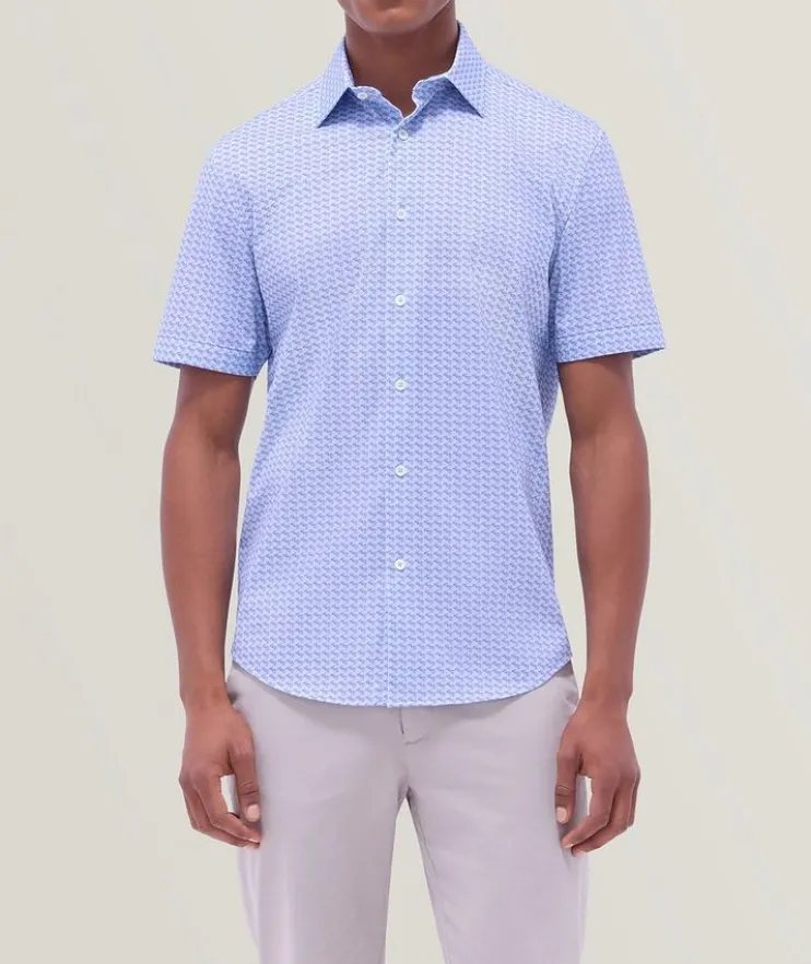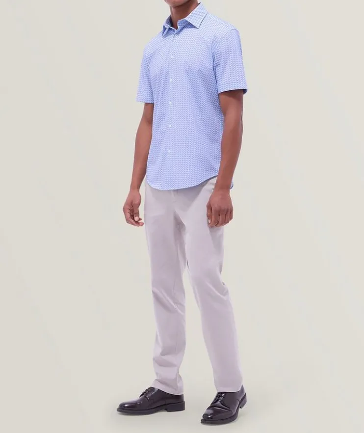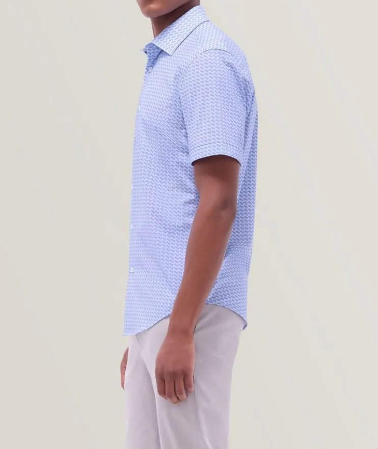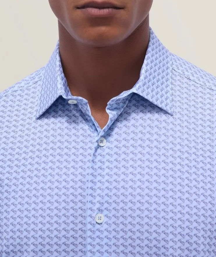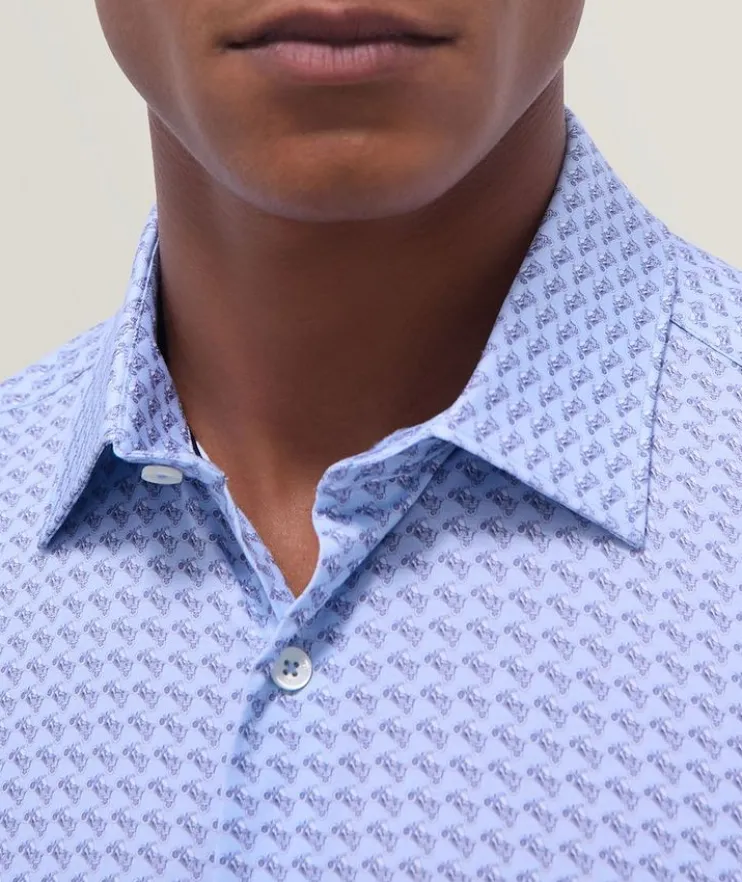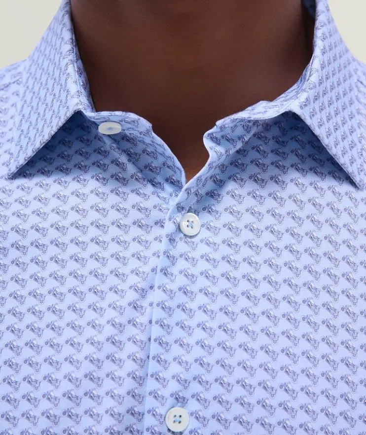 - Perfect for wearing tucked or untucked, this shirt is presented with a motorcycle print in the brand’s OoohCotton®, a quick-dry, high performance and breathable cotton-blend that’s wrinkle-resistant and features 8-way stretch so you can look and feel your best on every occasion.