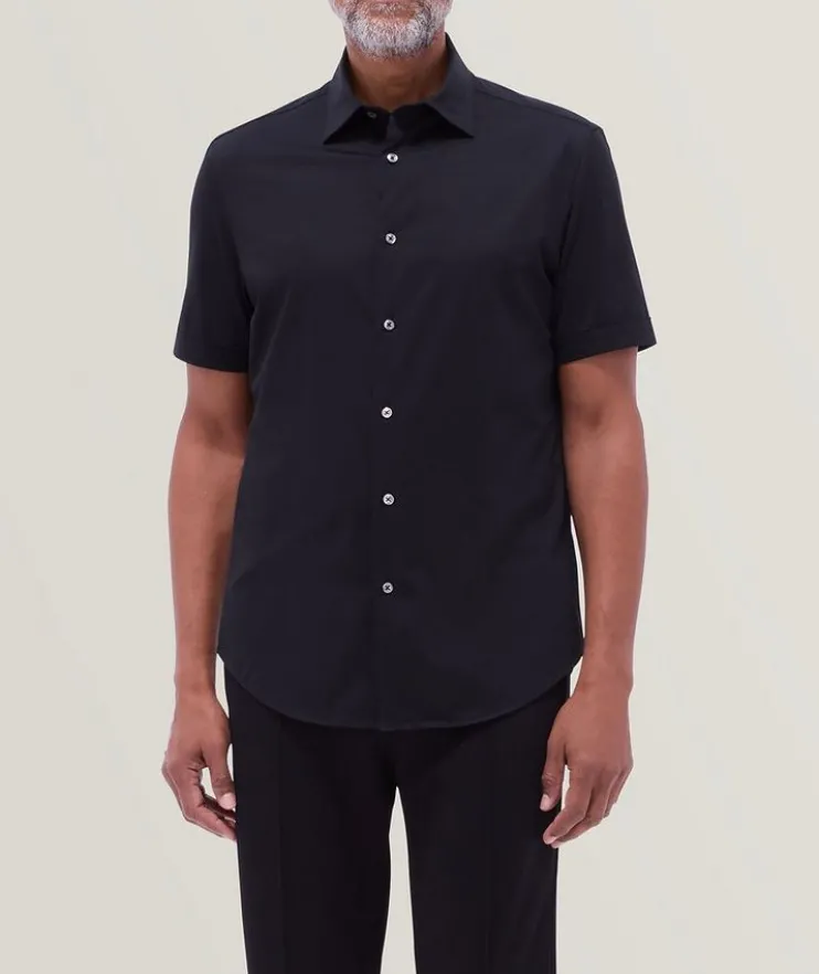 - Perfect for wearing tucked or untucked, this short-sleeve shirt is presented in the brand’s OoohCotton®, a quick-dry, high performance and breathable cotton-blend that’s wrinkle-resistant and features 8-way stretch so you can look and feel your best on every occasion.