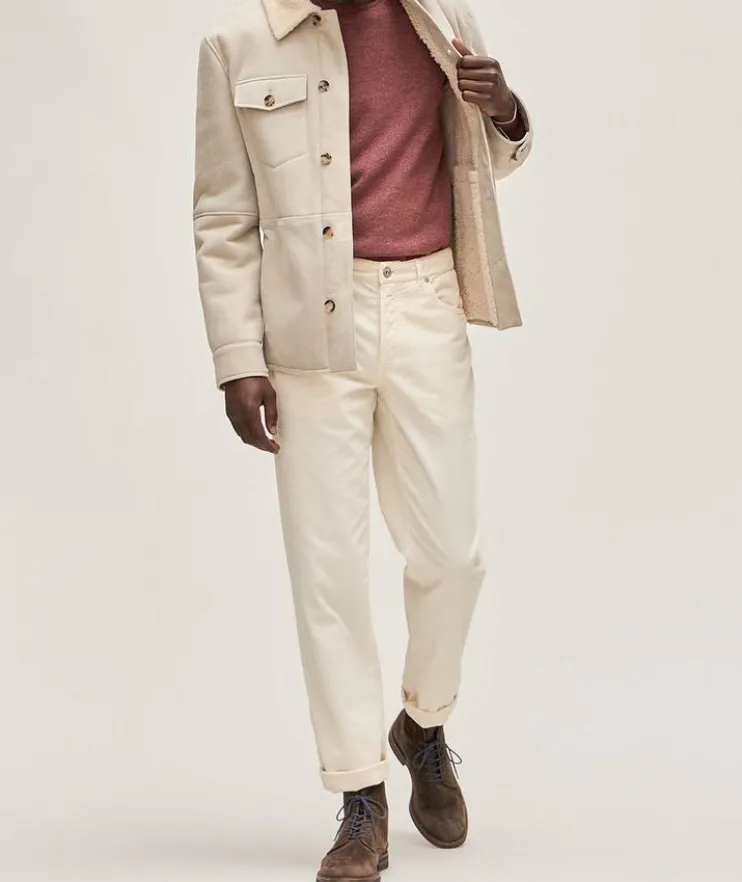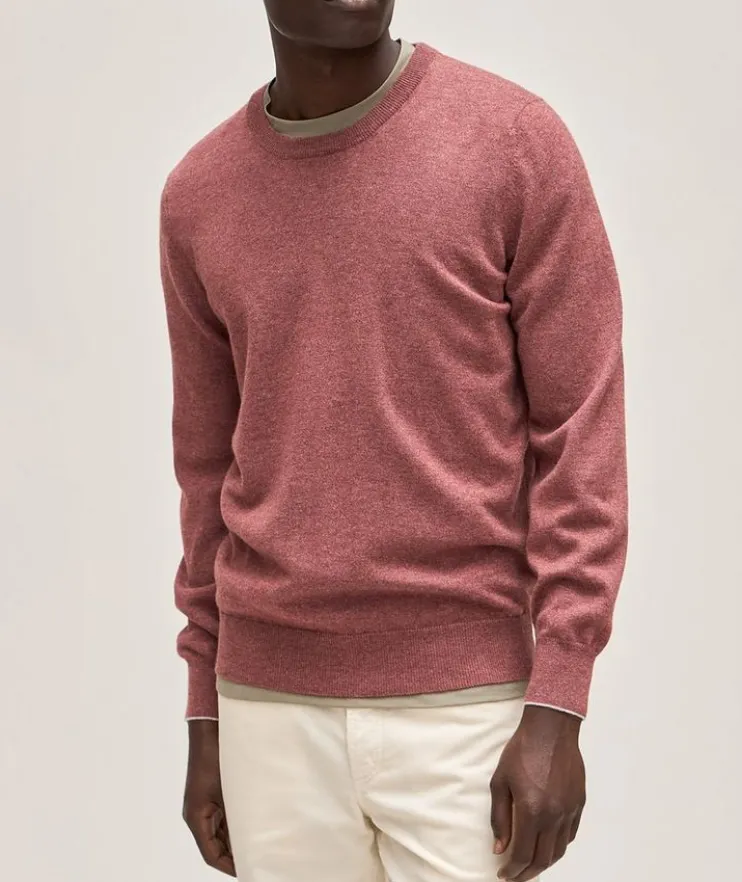 - For the man who appreciates the feel of luxury, this cashmere sweater offers a textured experience for your knitwear collection. Wear under a denim jacket to keep the chill away or pair with chinos to capture easy sophistication.