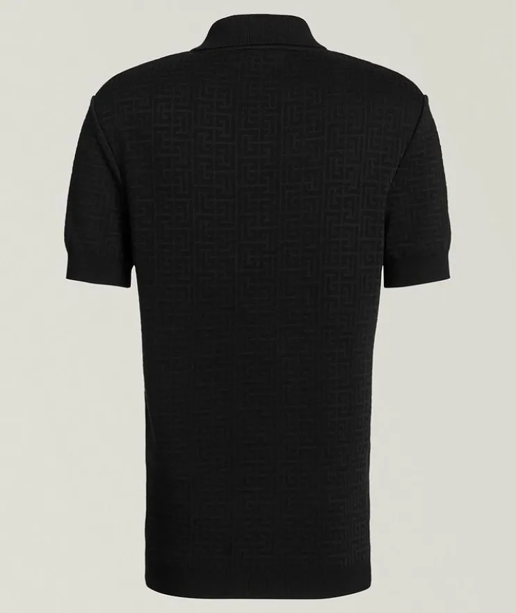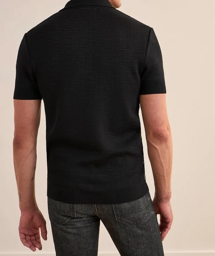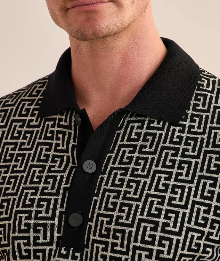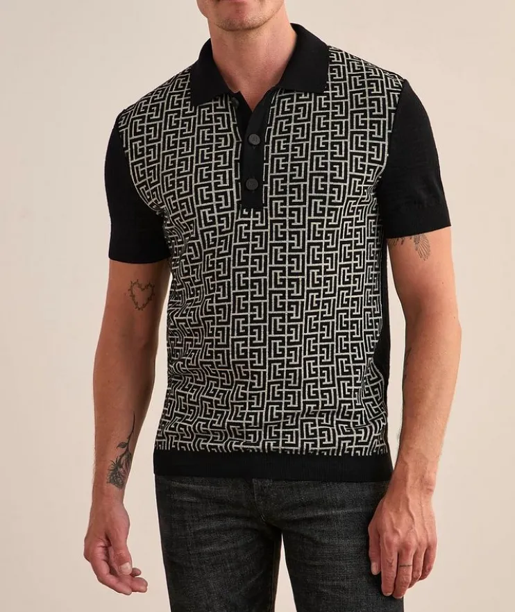 - This on-trend knit polo boasts an allover monogram print with a contrasting front for a statement look. Finished with ribbed trim in a refined fit for a flattering silhouette.