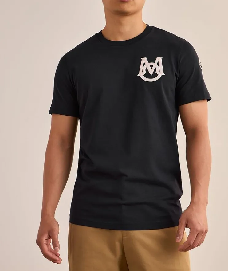 - This timeless crewneck T-shirt is elevated with an embroidered monogram decoration at the chest for a varsity-inspired appeal. A wardrobe staple that transcends the seasons, this piece is crafted soft and breathable cotton for optimal comfort.