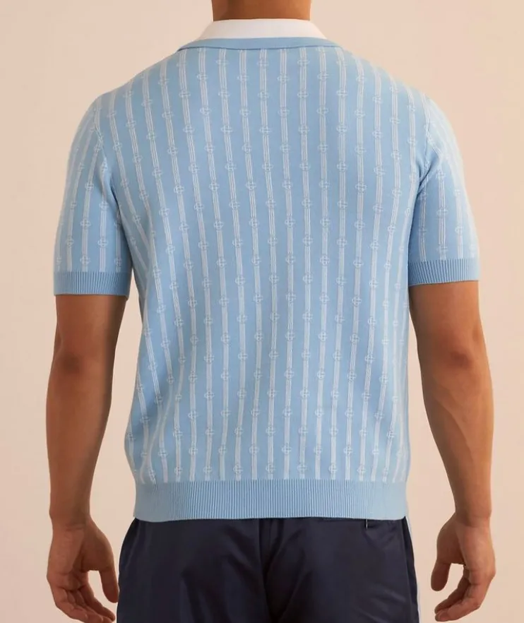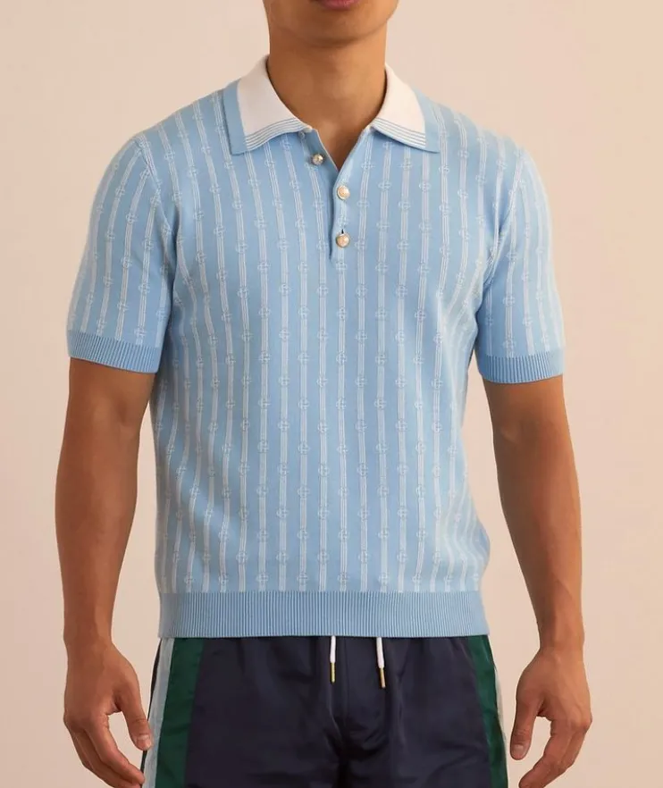 - Taking a cue from classic tennis style, this knit polo is decorated with a monogram logo print and pearl button details for a sporty aesthetic with a sophisticated touch.