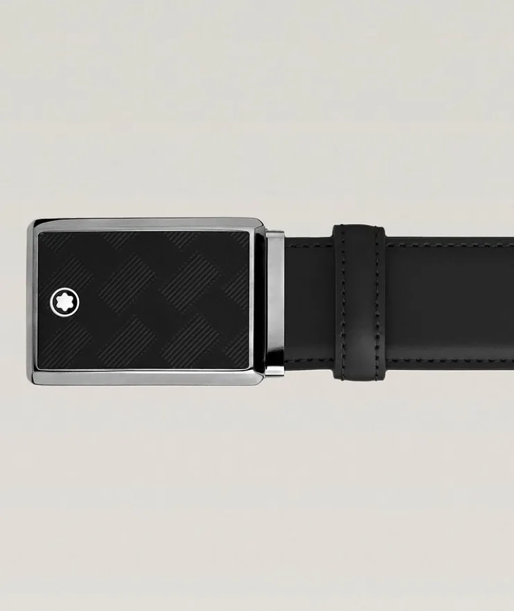 - This elegant leather belt is presented with a logo detail at the buckle to elevate any ensemble.