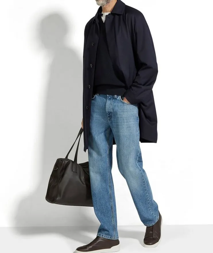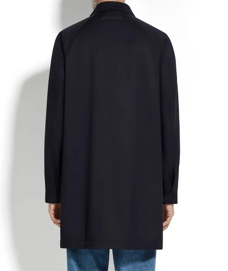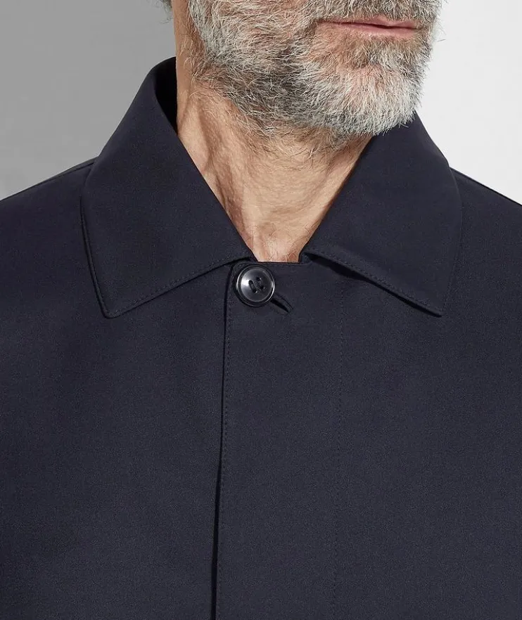 - Crafted from lightweight microfiber, this rain jacket is a refined wet-weather essential. Styled with an elegant shirt collar and sophisticated leather details in line with the brand’s vision of luxury leisurewear.