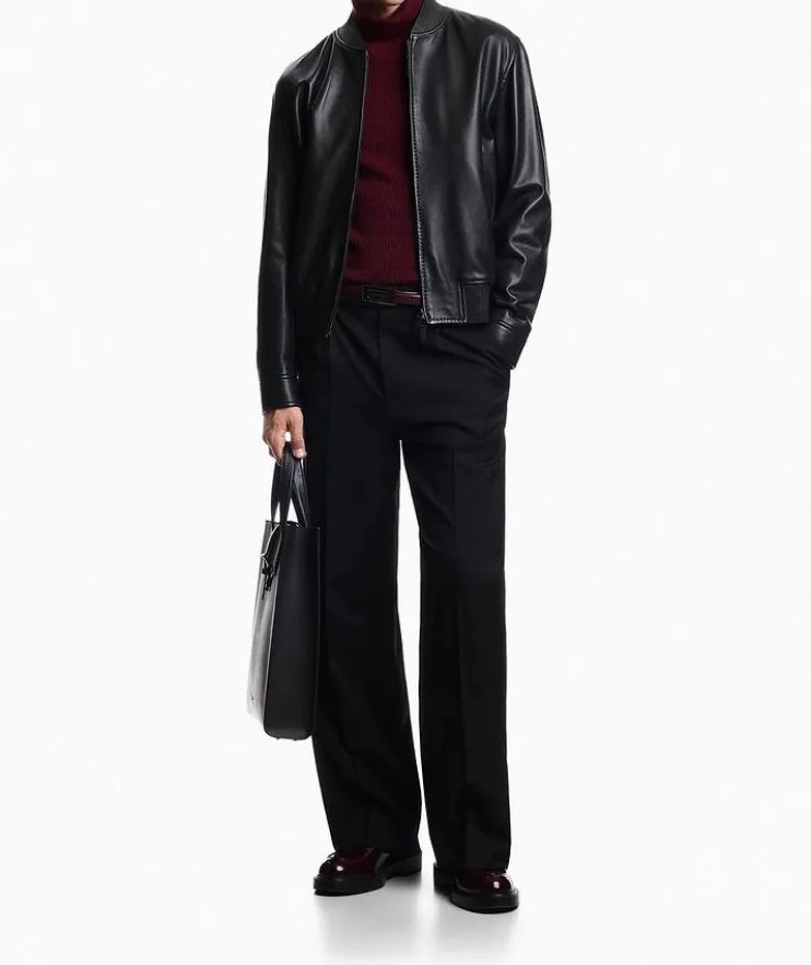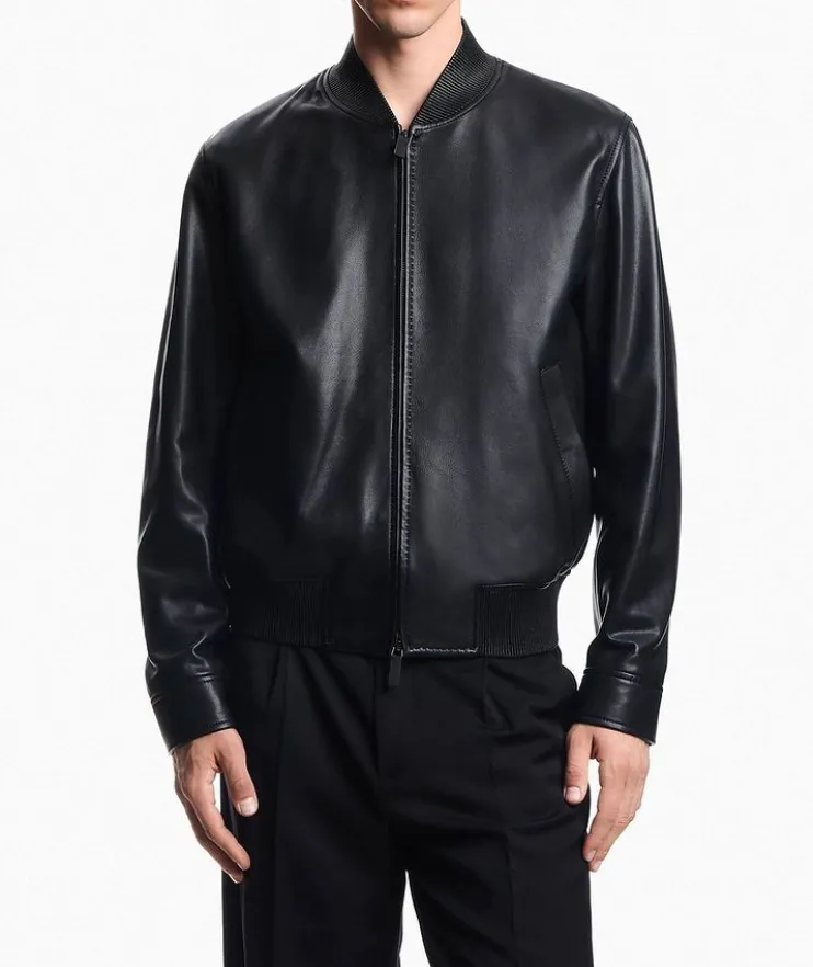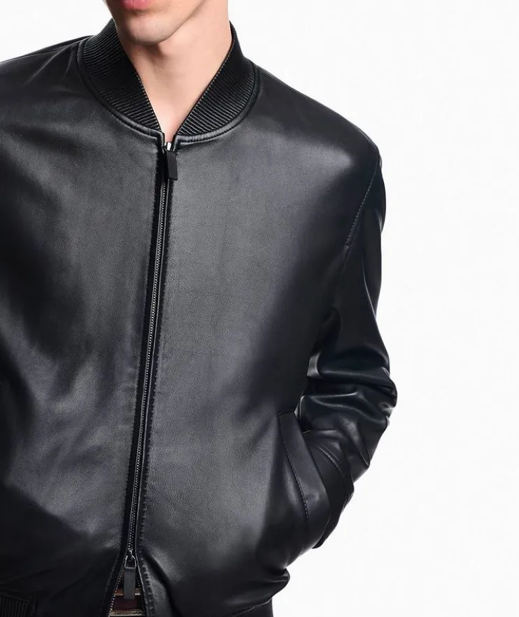 - Distinguished by its modern yet timeless design, this handsome leather jacket is made of aniline Nappa lambskin with a luxuriously supple feel. Soft ribbed trim and classic zip and snap details complete the sophisticated silhouette.
