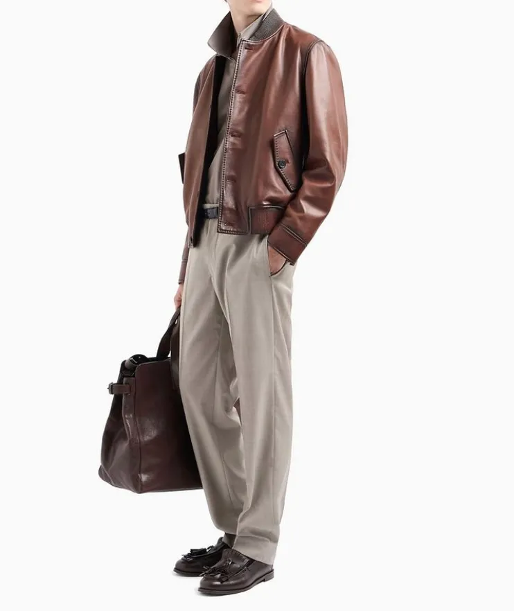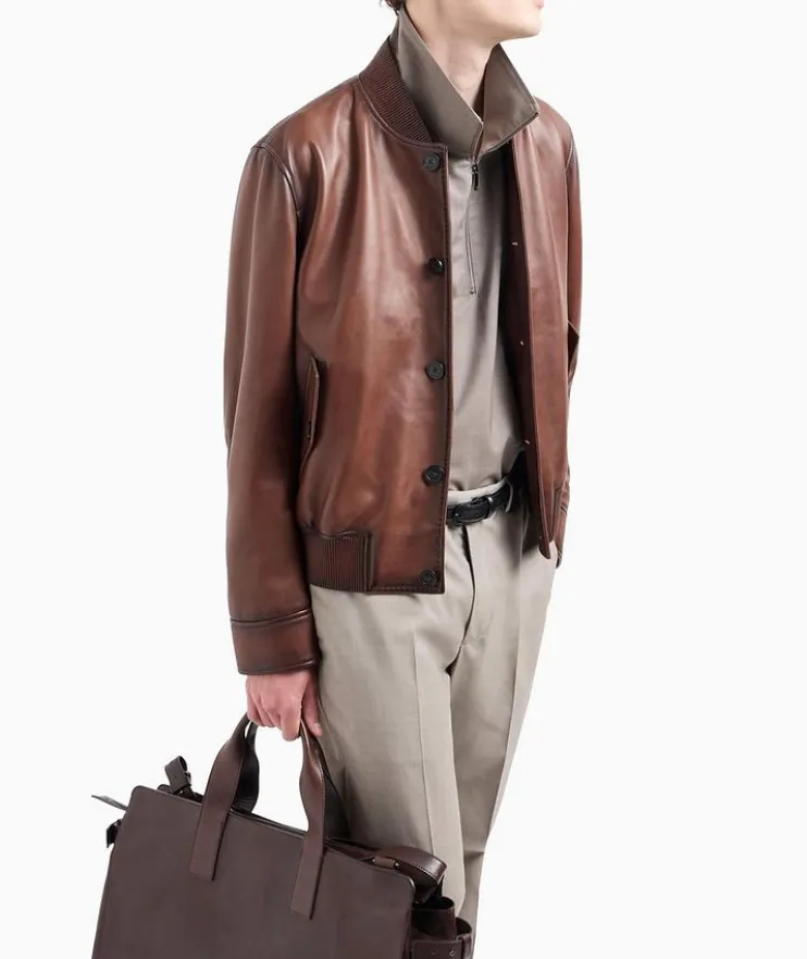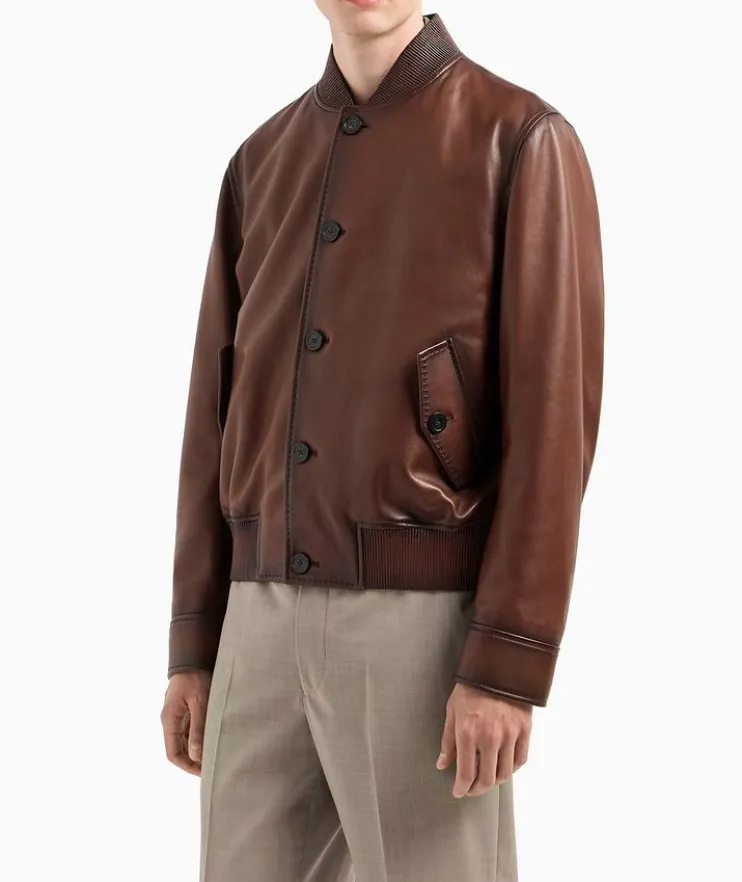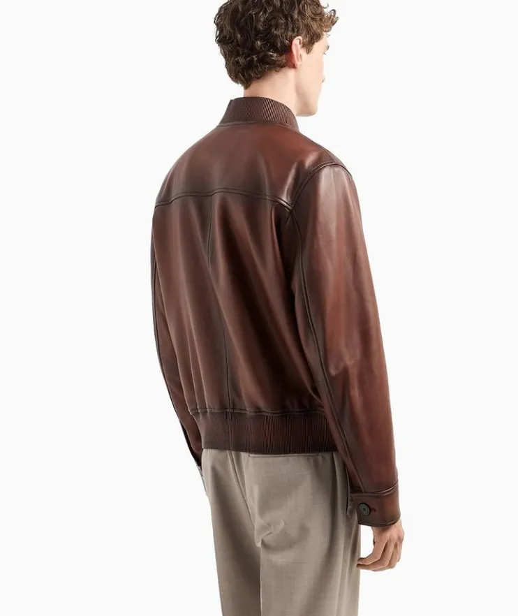 - Refined in its details and elements, this supple lambskin bomber features an airbrush spray in one tone darker than the garment for an elevated look and authentic style.