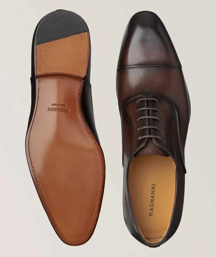 - Magnanni imbues modern wardrobes with generations of traditional Spanish shoemaking craftsmanship. Indicative of the brand’s prestigious art form, the lace-up Naxos derby is fashioned from luxurious smooth leather and features a cap toe, branded insole, and low block heel. They’re a suave option for day-to-day smart casual dressing, and a sure way to match your moxie.