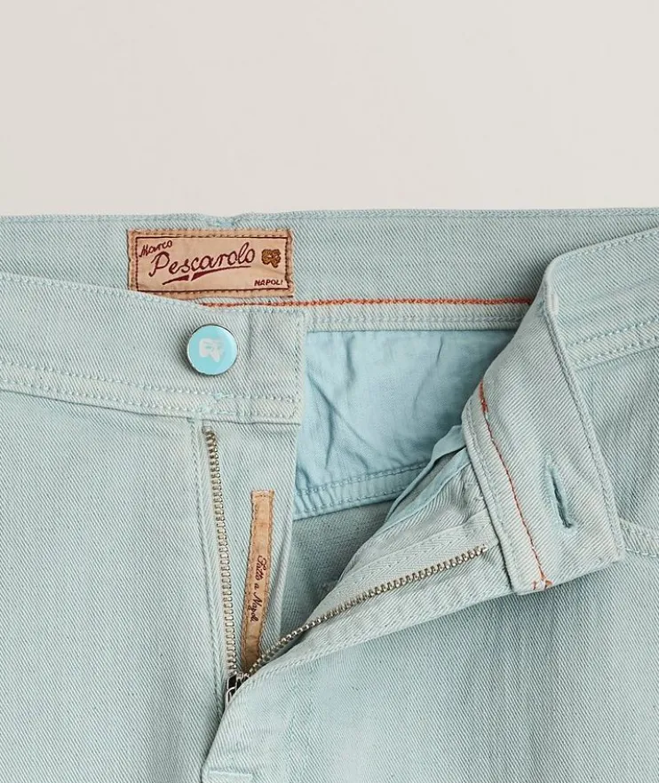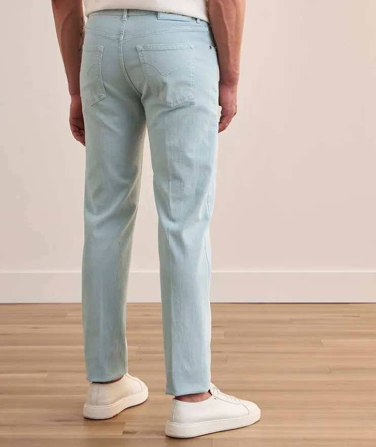 - Designed for a man on the go, these slim-fit jeans are crafted from a cotton and linen denim blend with slight stretch for added comfort and feature subtle logo details for a refined look.