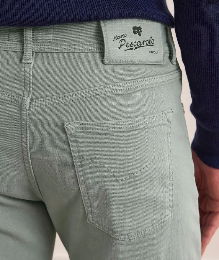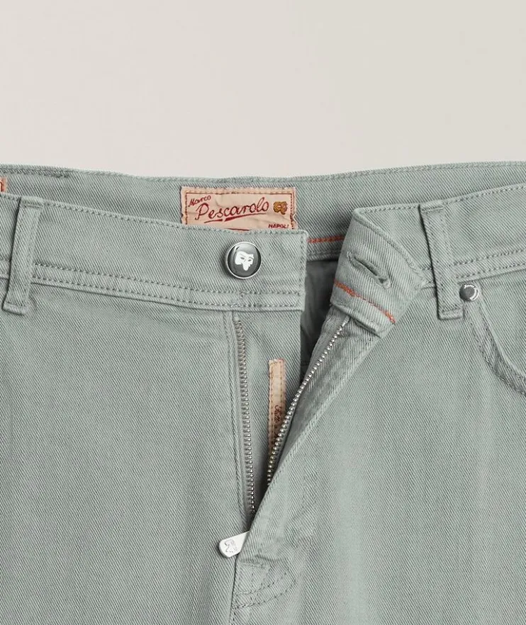 - Designed for a man on the go, these slim-fit jeans are crafted from a cotton and linen denim blend with slight stretch for added comfort and feature subtle logo details for a refined look.