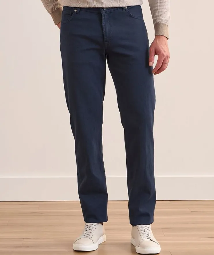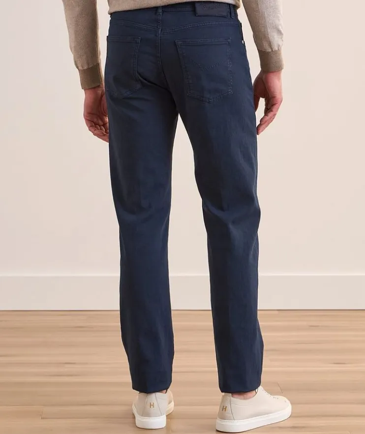 - Designed for a man on the go, these slim-fit jeans are crafted from a cotton and linen denim blend with slight stretch for added comfort and feature subtle logo details for a refined look.