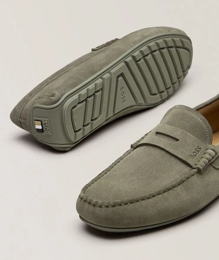 - Crafted in smooth suede in a timeless silhouette with strap detail and traction sole, these dashing drivers are a versatile addition to any footwear collection.