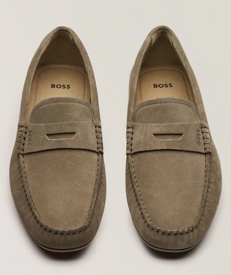 - Crafted in smooth suede in a timeless silhouette with strap detail and traction sole, these dashing drivers are a versatile addition to any footwear collection.