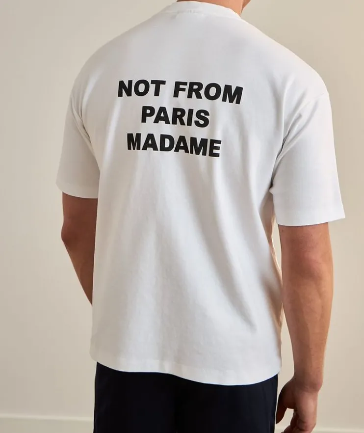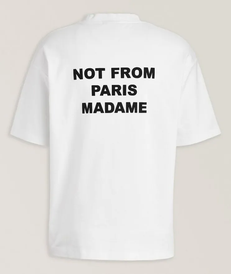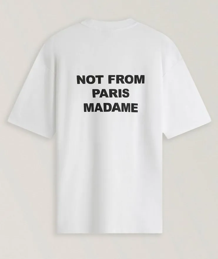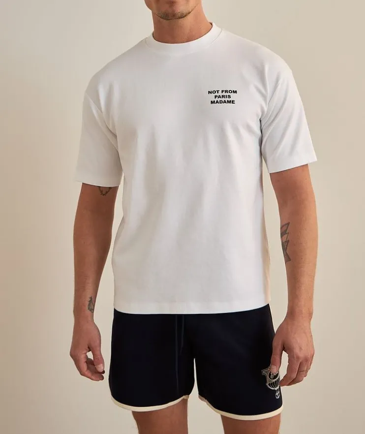 - An off-duty styling essential, this classic crewneck T-shirt is crafted from breathable cotton and boasts a slogan graphic print design at the front and back.