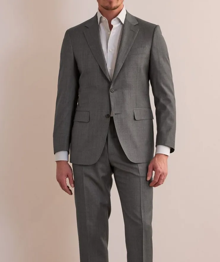 - This suit has been crafted in a regular fit, designed to sit naturally against the body.