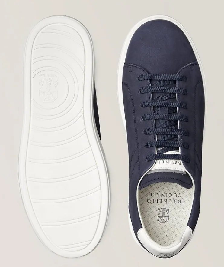- Refine your sneaker collection with this vintage-inspired pair from Brunello Cucinelli. Crafted in Italy, they feature a supple, yet tough nubuck calfskin upper with a lightly padded tongue for comfort. Contrast leather lining and a textured rubber outsole offer character the brand is known for, while the bold finish makes the pair effortlessly versatile. Team them with your favourite denim and t-shirt combo for easy looks seasons to come.