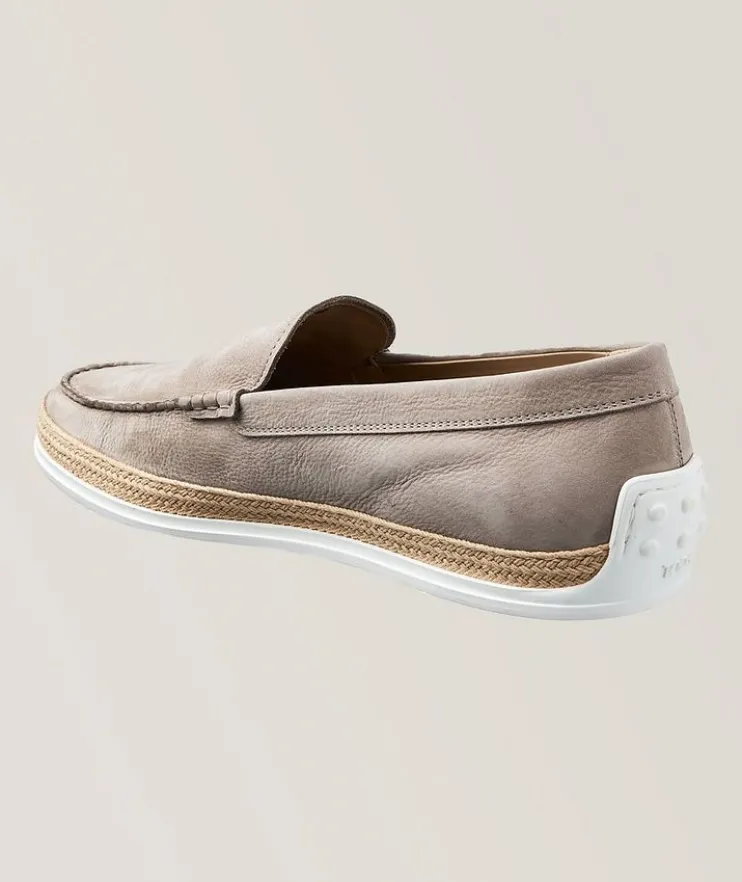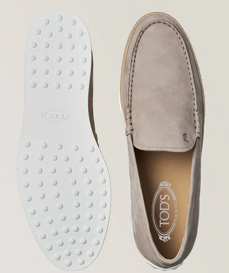 - Take on summer with Tod’s stylish slip-on espadrilles. They’re crafted in Italy from a nubuck fabric and feature a crafted chord applique above a classic rubber outsole, the embossed rubber pebbles and handcrafted raffia weaving complete the unique style. Team them with chino shorts and a relaxed polo shirt for summer days at the cottage.