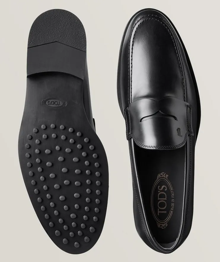 - The iconic brand presents the Italian hand-stitched style in leather with a traditional penny loafer vamp. Team them with cuffed chinos and a relaxed button-down shirt on the weekend.