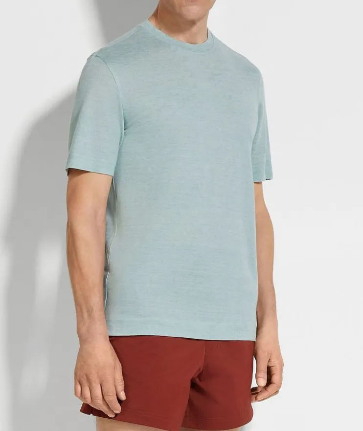 - Stylish casual outfits start the perfect base layer. This short-sleeve t-shirt is fashioned in luxuriously soft and breathable linen and styled with folded cuffs and classic ribbed trim.
