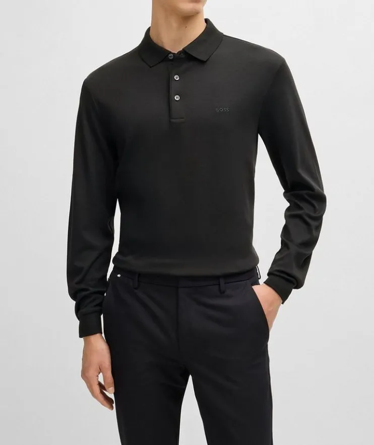 - Iconic under any circumstances, BOSS polos will always remain in good taste for contemporary style. This regular-fit polo is crafted from interlock cotton fabric, and features a classic spread collar, three-button placket, and logo embroidered at the left chest. Style it with jeans or chino pants for casual occasions or layer it with tailoring for work, rest assured you’ll make an entrance like a boss wherever you go.