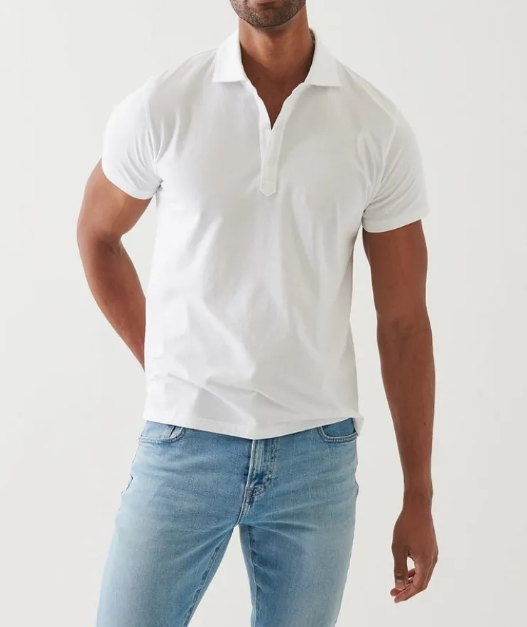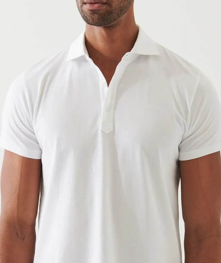 - A perfect elevated polo to layer under your favourite topper, this design is made from organic Pima cotton jersey and is detailed with a sharp sartorial collar and modern short sleeves.