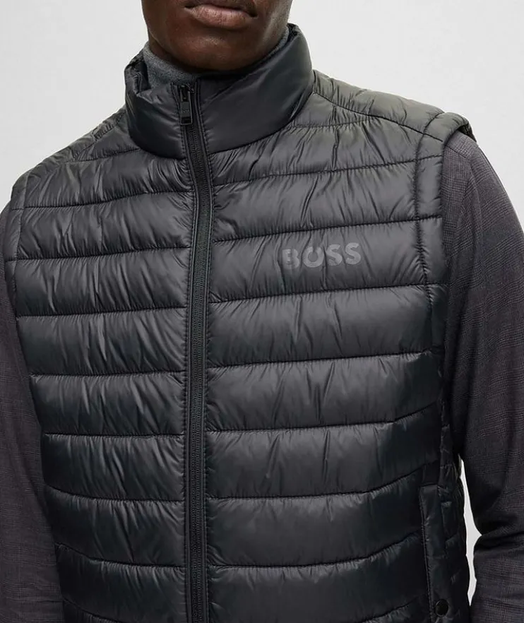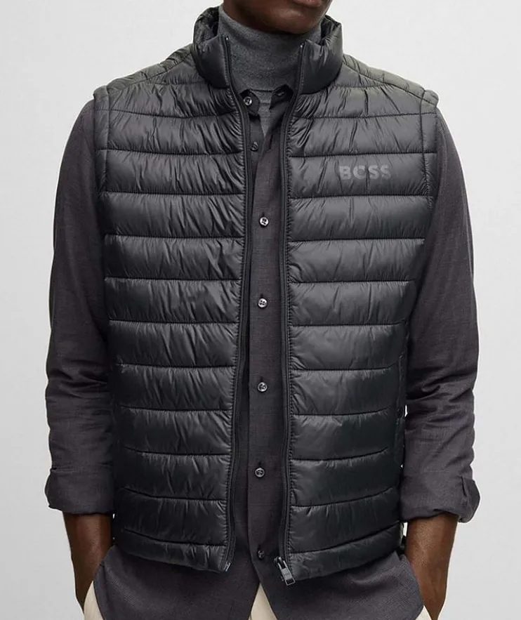 - Amplify the boss within you and update your transitional season attire with this incomparable gilet vest by BOSS Menswear. Crafted in ultra lightweight water-repellent fabric, the easy-layering style layers gracefully over tees, knitwear, and button-ups alike.