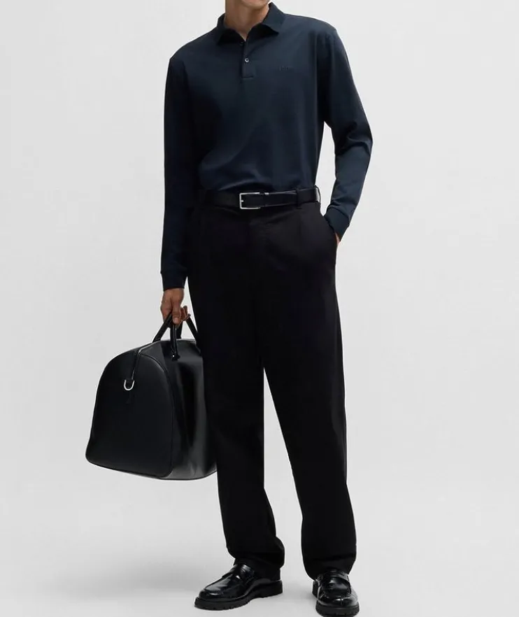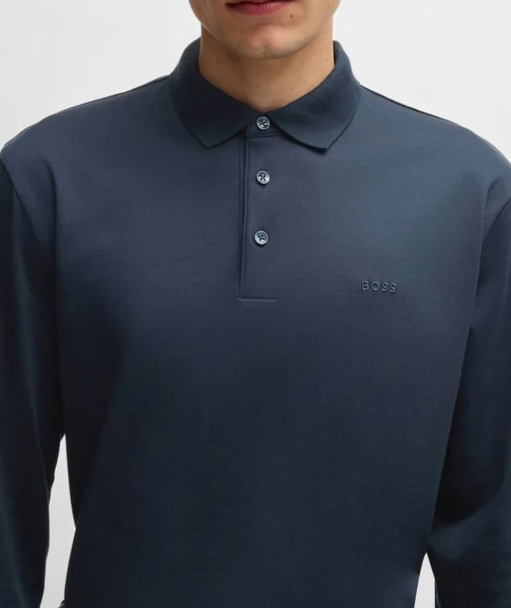- Iconic under any circumstance, a BOSS polo will always remain in good taste for contemporary style. This regular-fit polo is crafted from interlock cotton fabric and features a classic spread collar, three-button placket and a subtle tonal logo embroidered on its left chest. Style it with jeans or chino pants for casual occasions, or layer it with tailoring for work. Rest assured you’ll make an entrance like a boss wherever you go.