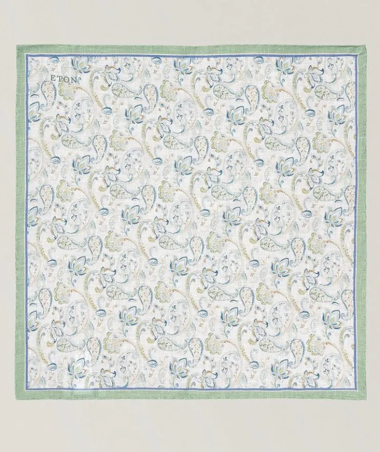 - Add a warm-weather detail to your tailoring with this 100% linen pocket square printed with a stylish paisley pattern. The 100% pure linen fabric’s texture creates a relaxed aesthetic, while the vibrant pattern adds a smart touch.