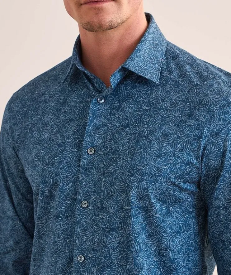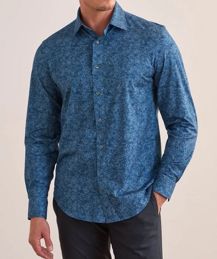 - Crafted from the brand’s exclusive OoohCotton® fabric, this lightweight sport shirt with a palm leaf print is soft, breathable and wrinkle-resistant, perfect for the office or elevating casual looks.
