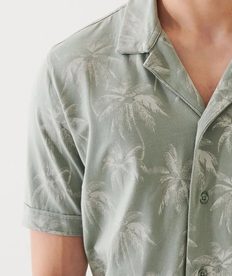 - Styled with an allover palm print for added texture and visual appeal, this easy to wear camp shirt is cut from luxuriously soft, breathable cotton with a touch of stretch.