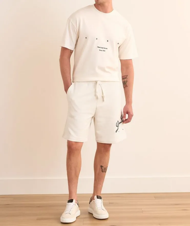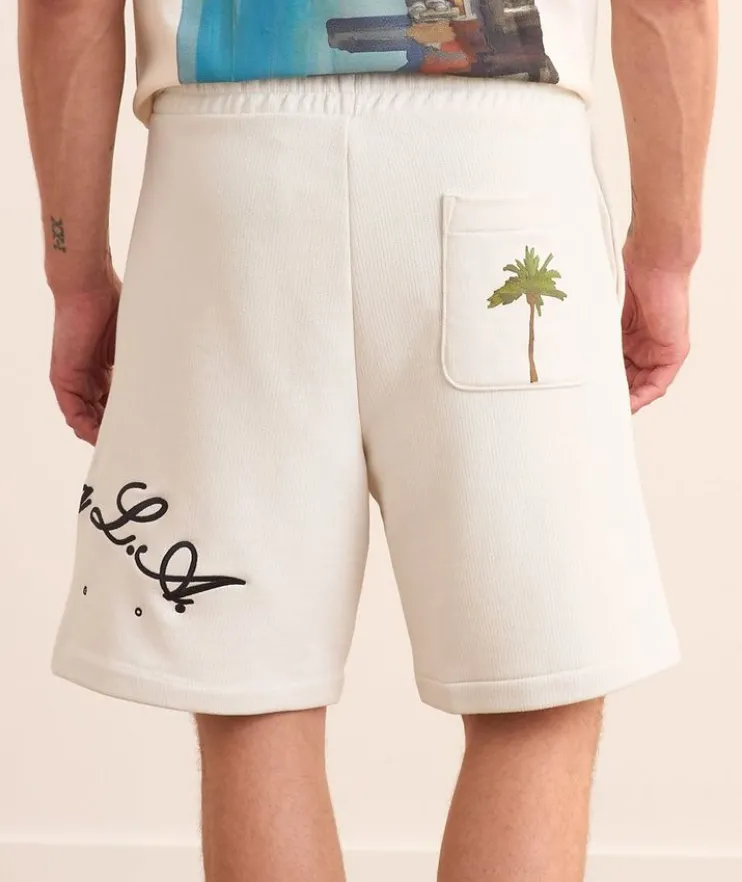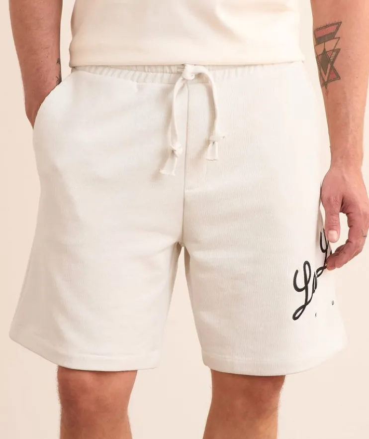 - Crafted from soft cotton with natural stretch, these comfy shorts add a playful twist to leisurewear with embroidered and graphic print details. An elasticized waist and easy slip pockets lend a laidback element to this casual summer staple.