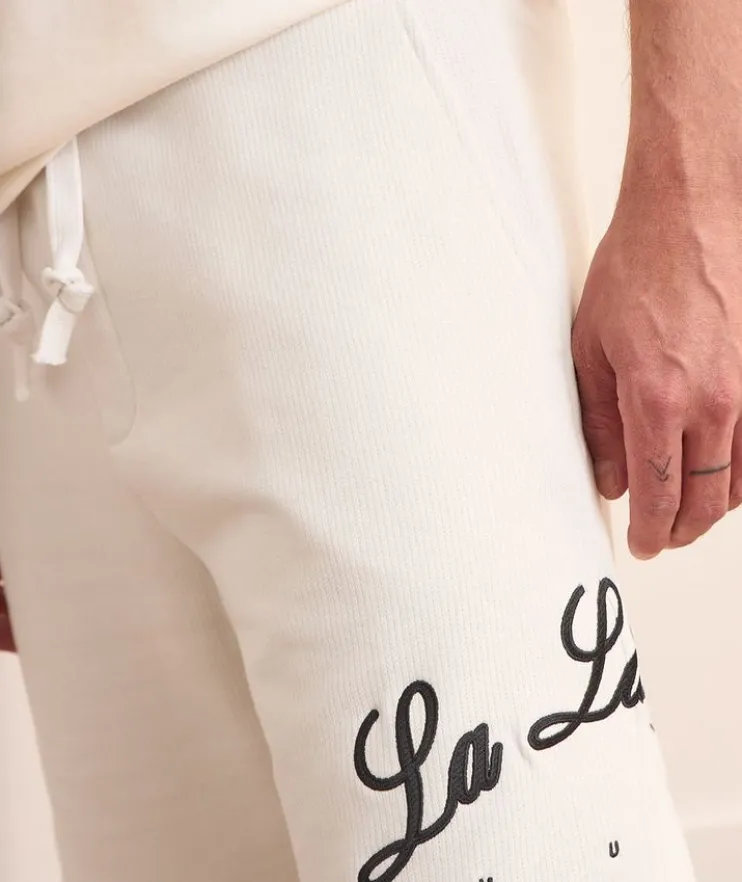 - Embroidered LA and logo detailing at side hem
