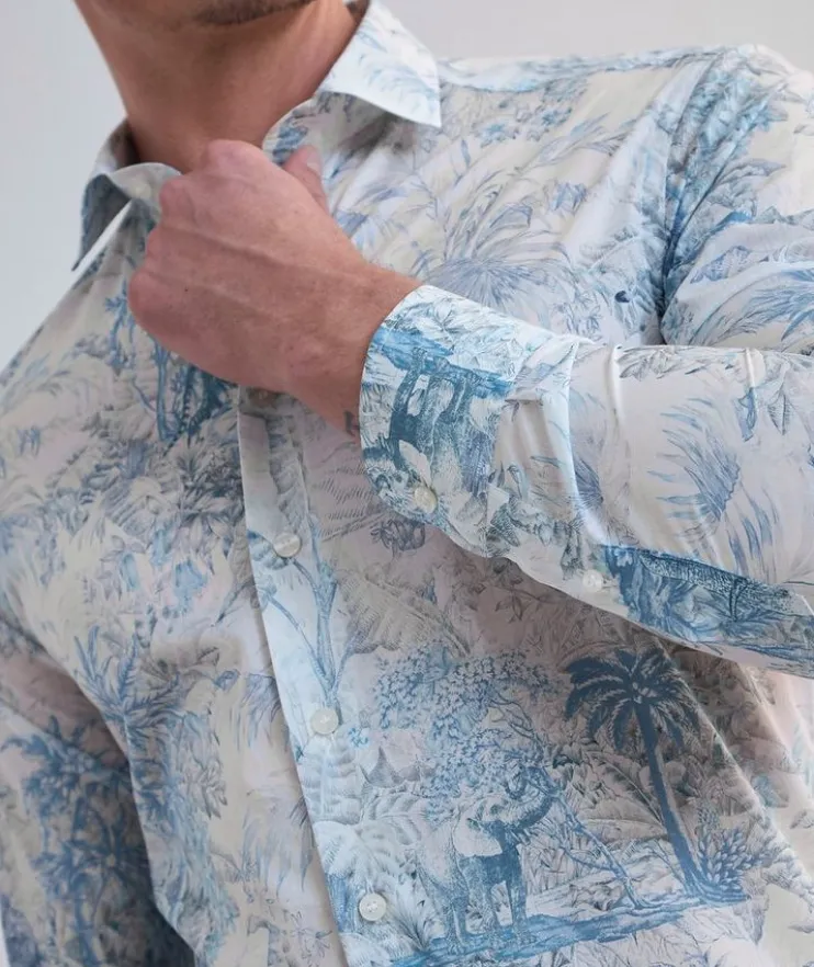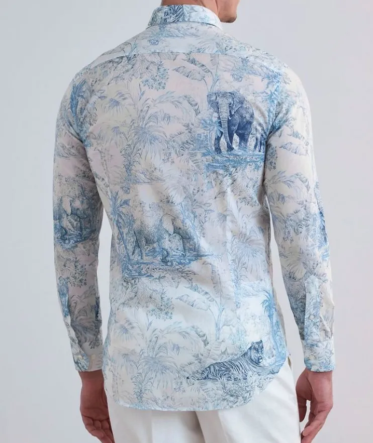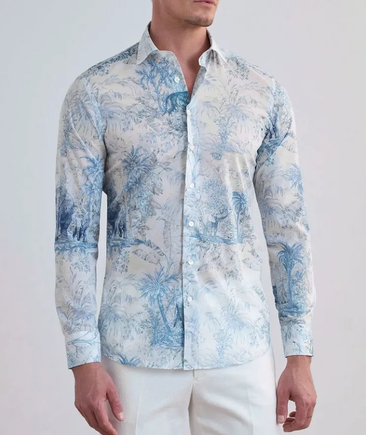 - Cut from soft, lightweight cotton and boasting an exotic print, this classic sport shirt adds a playful element to any ensemble.
