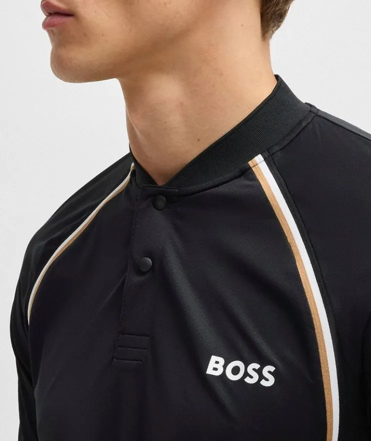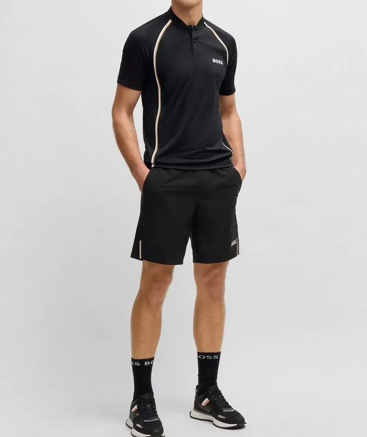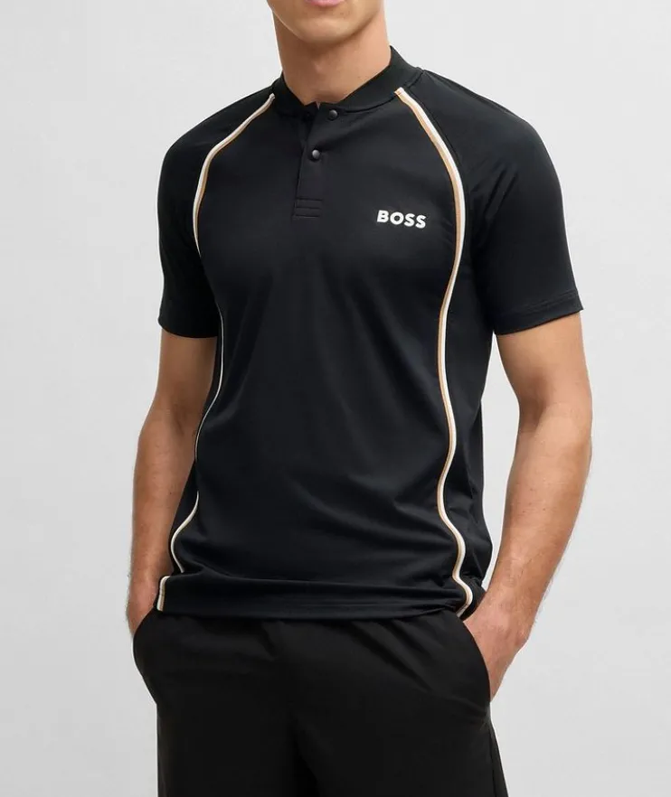 - Ideal for tennis or elevating casual looks, this contemporary polo is crafted from quick-dry fabric, and features collarless styling for a clean look.