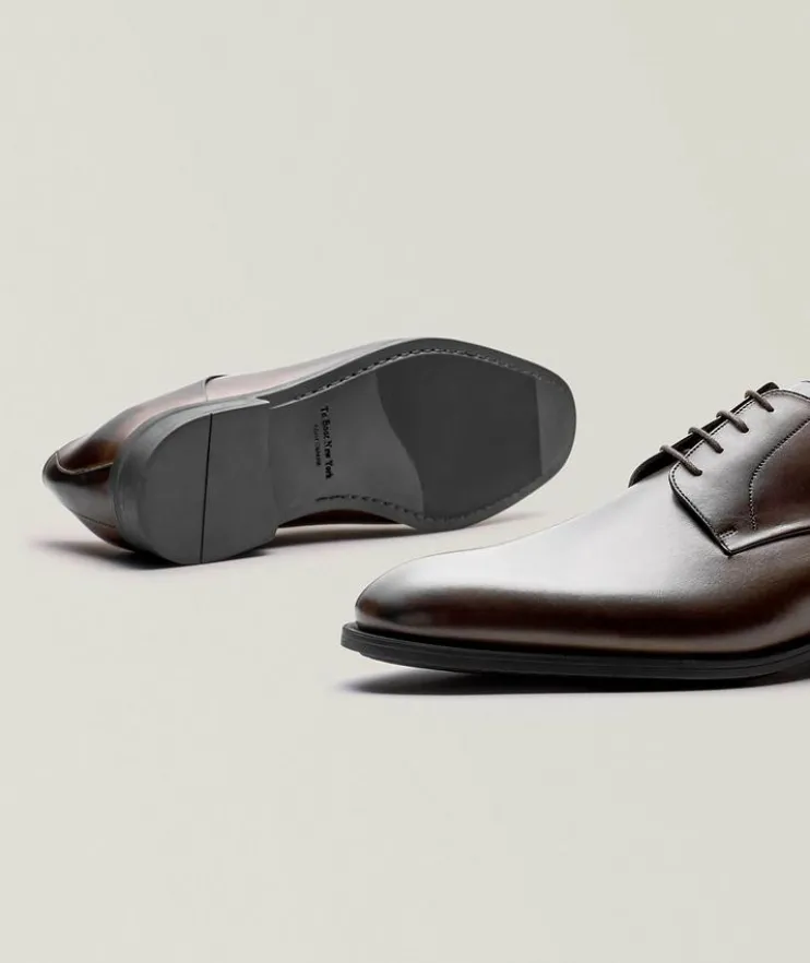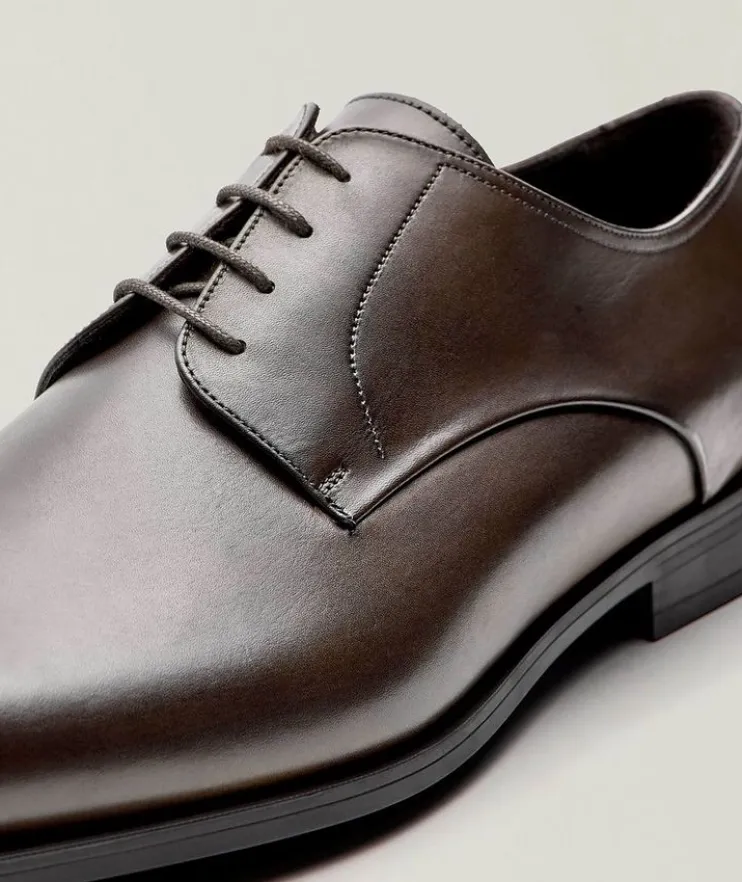 - Step into sophistication with these exquisite derby shoes are designed for the discerning gentleman who values luxury and quality. Made in Italy, these shoes are crafted from smooth leather and are enhanced by meticulous stitch details, offering both elegance and comfort.